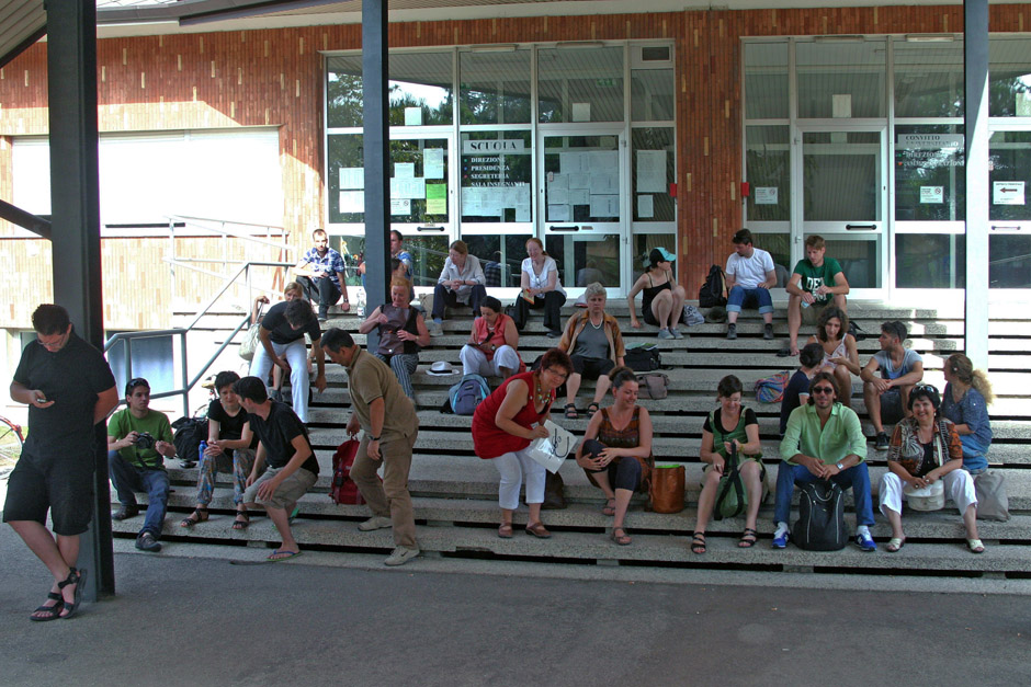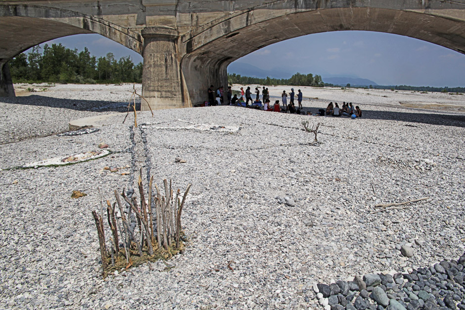 Ci siamo poi trasferiti al “Parco di Cemento”, setting di due Workshop organizzati dall’Associazione Modo. Lì si è tenuto un momento formativo sul tema della città nella storia dell’arte tenuto da Daniele Fraccaro, docente di Storia dell’Arte all’accademia di Urbino. Il giorno seguente il gruppo ha partecipato ad un workshop condotto dal prof. Jus della scuola di mosaico, in cui abbiamo realizzato un macro-mosaico, servendoci dei materiali offerti dalla natura.